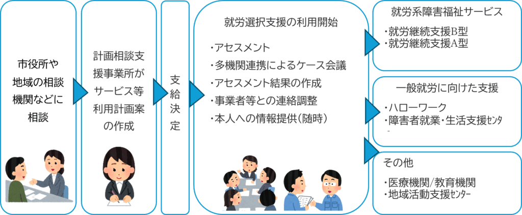 本記事では就労選択支援とはどういったものなのか、対象者や支給期間、サービス利用までの流れなどを解説していきます。