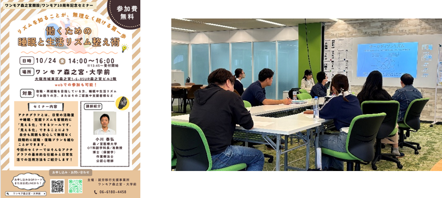 2025年10月24日にワンモア森之宮・大学前にて「働くための睡眠と生活リズム整え術」を開催しました。今回はその様子をご紹介します。