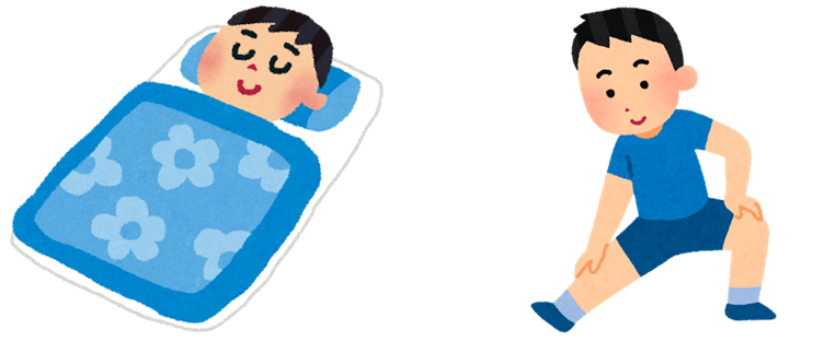 社会不安障害によってみられる身体症状には、不安や緊張による体のこわばりが見られます。体のこわばりは睡眠の妨げになることがあるため、上述の規則正しい生活を妨げる要因になると考えられます。不安や緊張によって生じた体のこわばりをほぐすためには、適度な運動が効果的と考えられています。例えば短いウォーキングや簡単なストレッチなど、日常生活の中で継続しやすいものが望ましいとされています。入浴や手や足のツボを押すといった簡単なマッサージも効果があると考えられます。また腹式呼吸を意識する呼吸法も効果的です。社会不安障害による体のこわばりは、体内の交感神経が活発になることが関連しています。呼吸法には交感神経の働きを落ち着け、体をリラックスさせる効果があるため、呼吸法を取り入れることで体のこわばりなど社会不安障害による身体症状が緩和すると考えられます。
